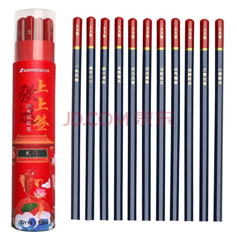 商品相册:三木上上签筒装铅笔 2B考试答题卡铅笔 12支装 QY18第