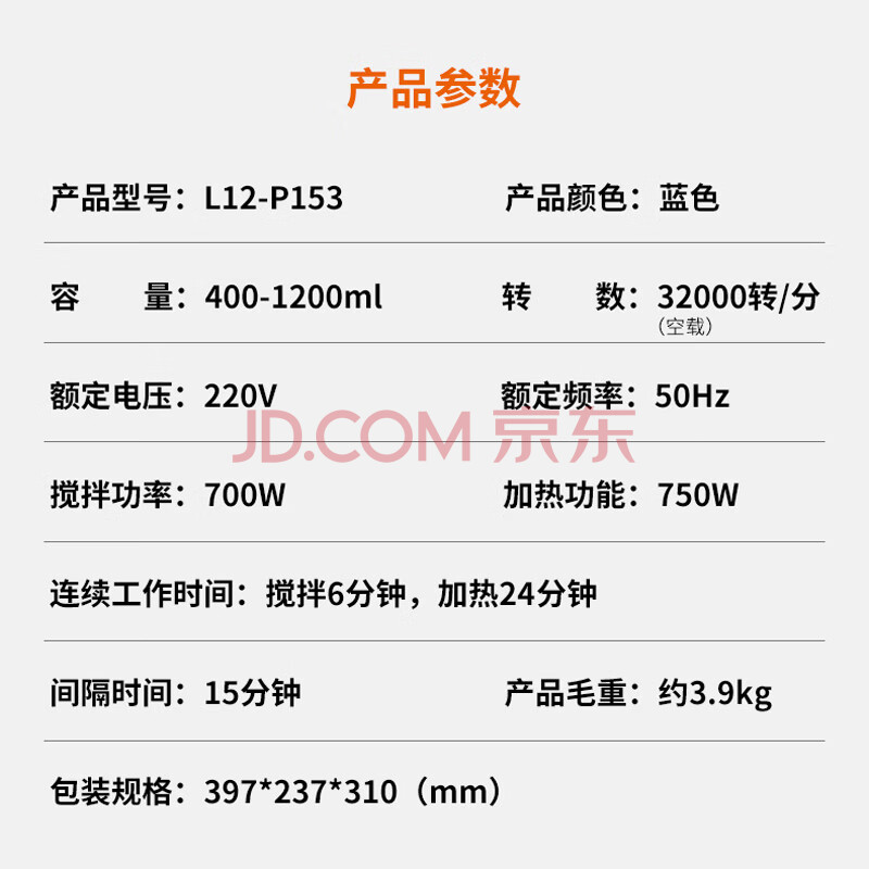 商品相册:九阳(Joyoung)破壁机家用多功能1.2L小容量双打豆浆机果蔬汁料理机第