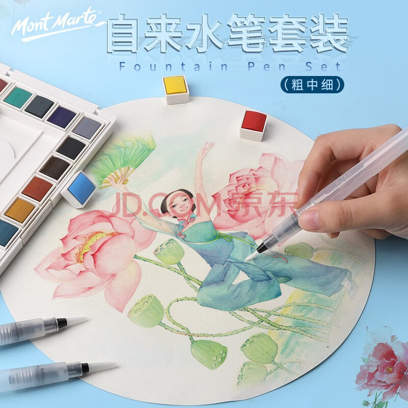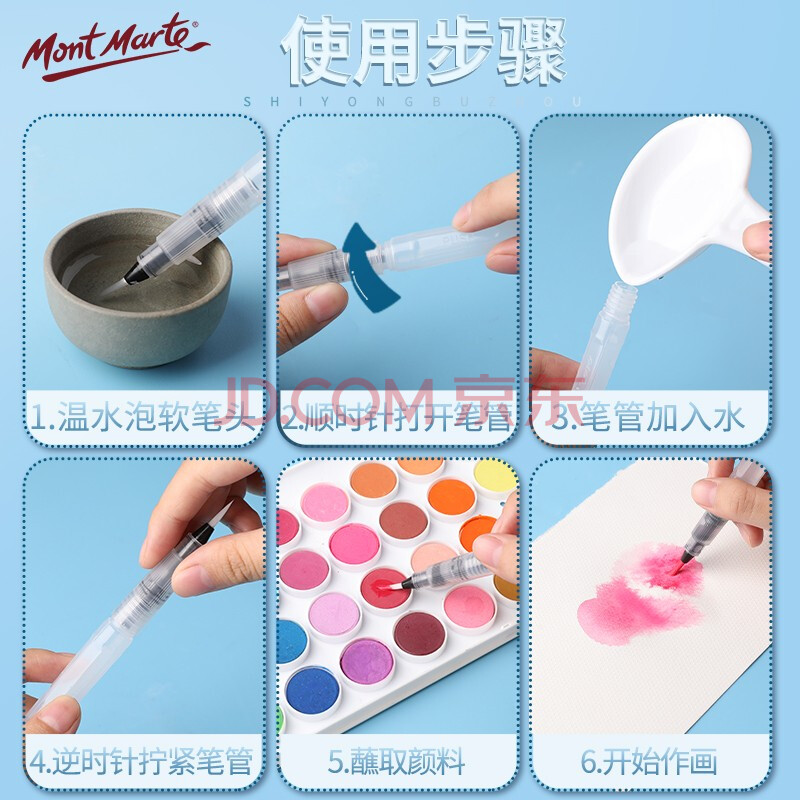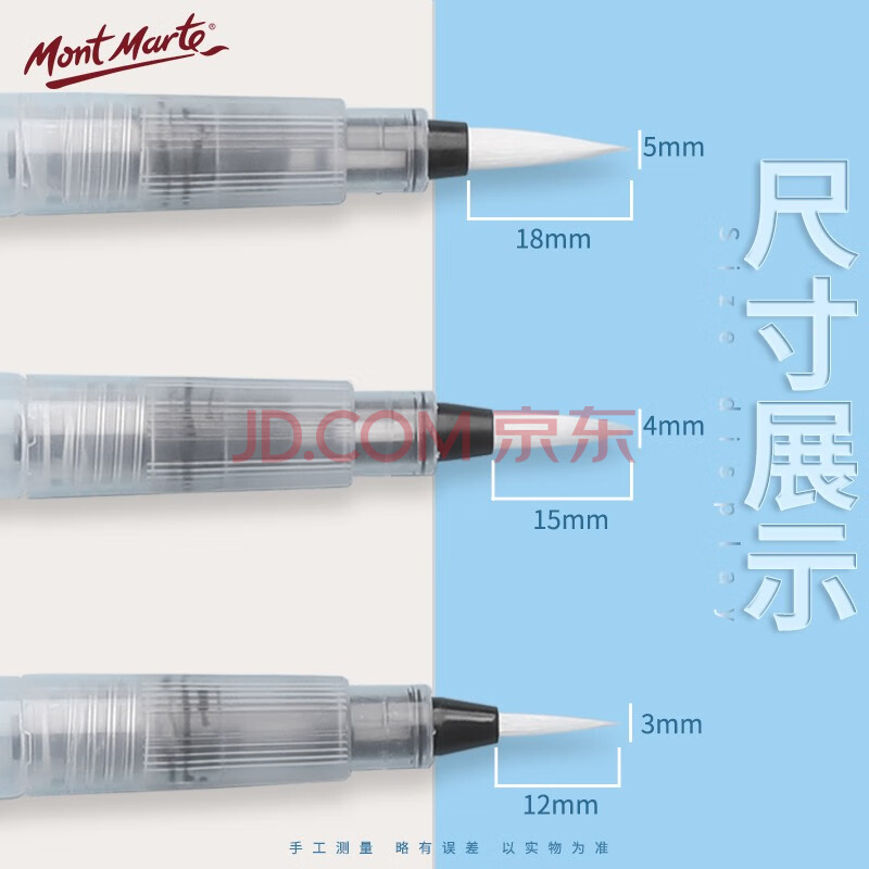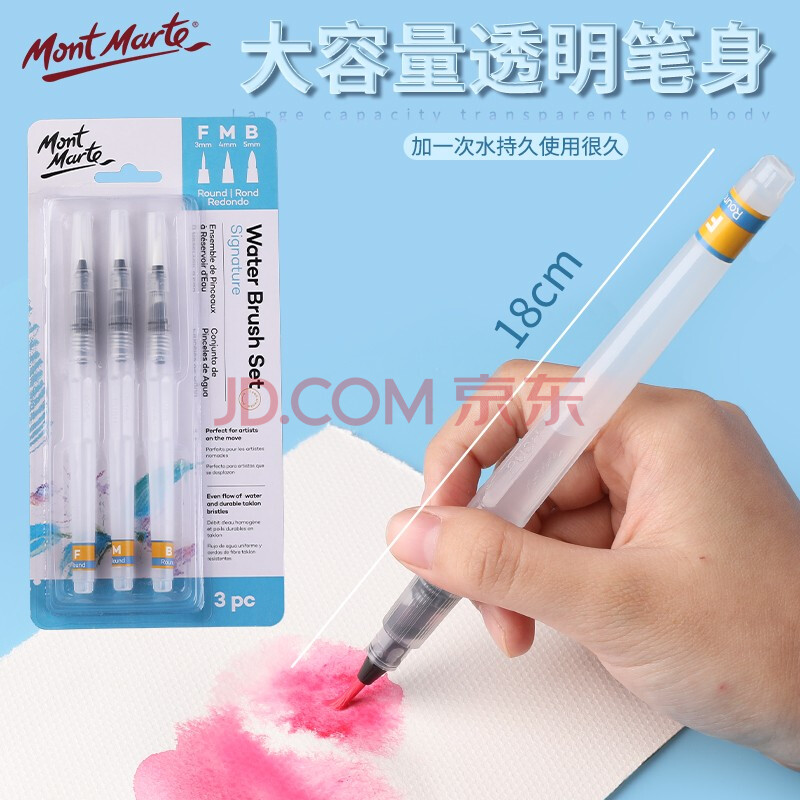 商品相册:蒙玛特(Mont Marte)自来水笔3支装 水彩画笔固体水彩颜料画画笔套装 软头毛笔彩笔大中小美术绘画笔BMHS0035 速写 马克笔绘画第