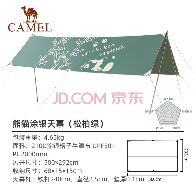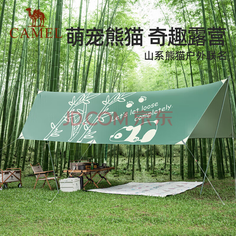 商品相册:骆驼(CAMEL)户外精致露营天幕帐篷野餐便携式涂银防晒遮阳棚【山系熊猫】第