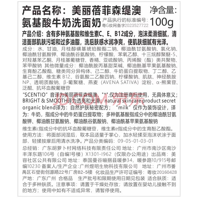 商品相册:美丽蓓菲森缇澳氨基酸蛋白洗面奶100ml*1支温和保湿护肤女泰国进口送女友礼物第