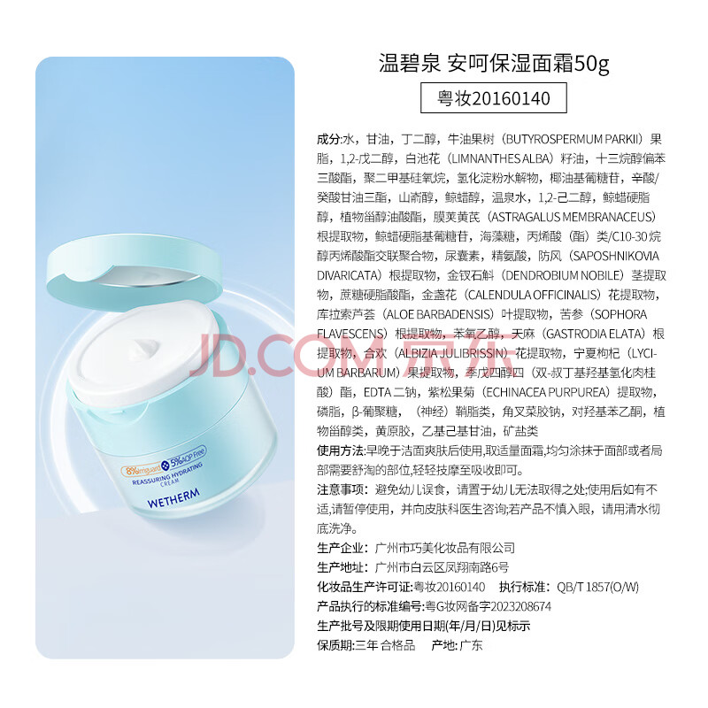 商品相册:温碧泉面霜舒缓修护安呵保湿面霜50g护肤化妆品 男女学生敏感肌适用第