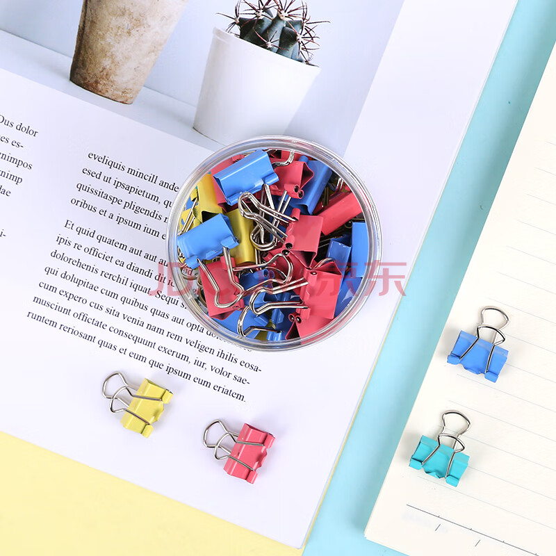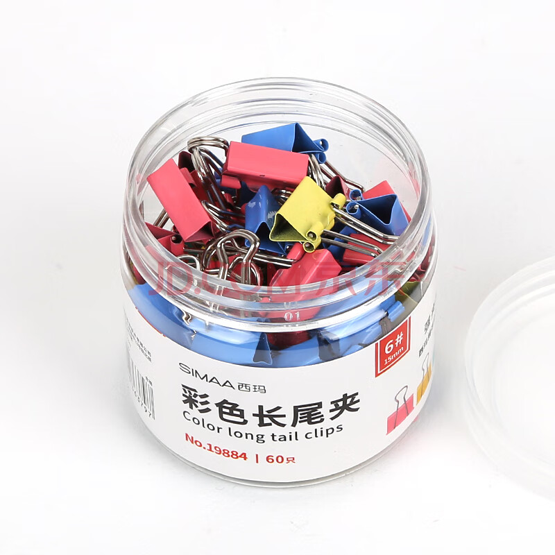 商品相册:西玛(SIMAA)60只15mm彩色长尾夹票夹 金属燕尾夹票据文件夹办公 文具用品 60只/筒19884第
