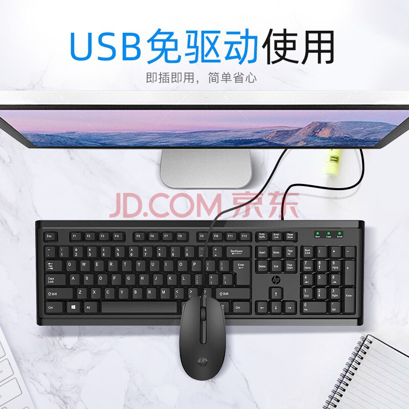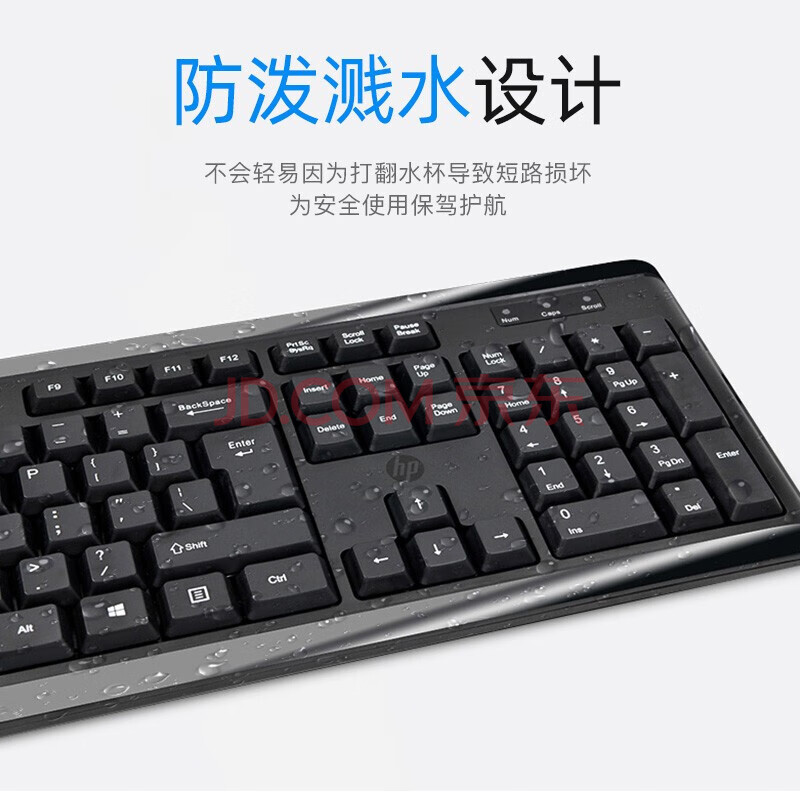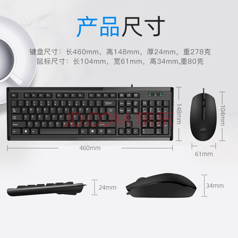 商品相册:惠普(HP)办公键鼠套装 有线办公键盘鼠标套装 104键全尺寸防泼溅舒适耐磨 笔记本台式电脑通用 KM10黑色第