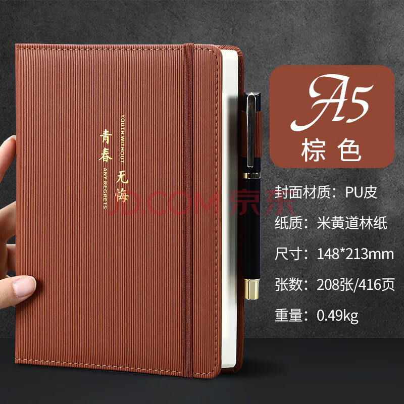 商品相册:嘉然恒 笔记本本子a5商务记事本简约加厚日记本办公文具用品皮面绑带本子工作会议记录本子可定制 棕色第
