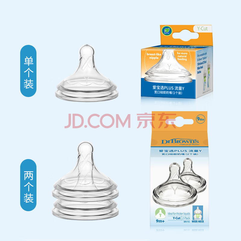 商品相册:布朗博士婴儿奶嘴 宽口径硅胶Y孔中流速 9月+ (2个装) 爱宝选PLUS系列第