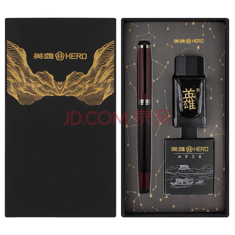 商品相册:英雄(HERO)钢笔 6192 陈酒红 男女商务个性办公签字笔钢笔礼盒墨水套装第