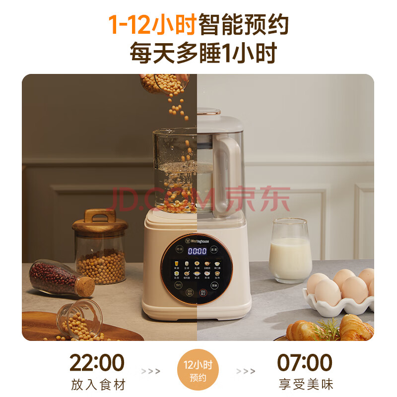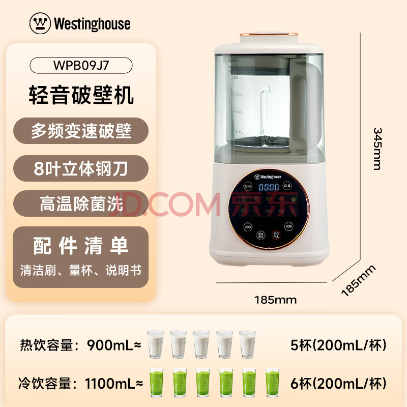 商品相册:西屋(Westinghouse)柔音破壁机家用豆浆机1.1L加热全自动榨汁机搅拌机降噪辅食机 WPB09J7杏仁白第