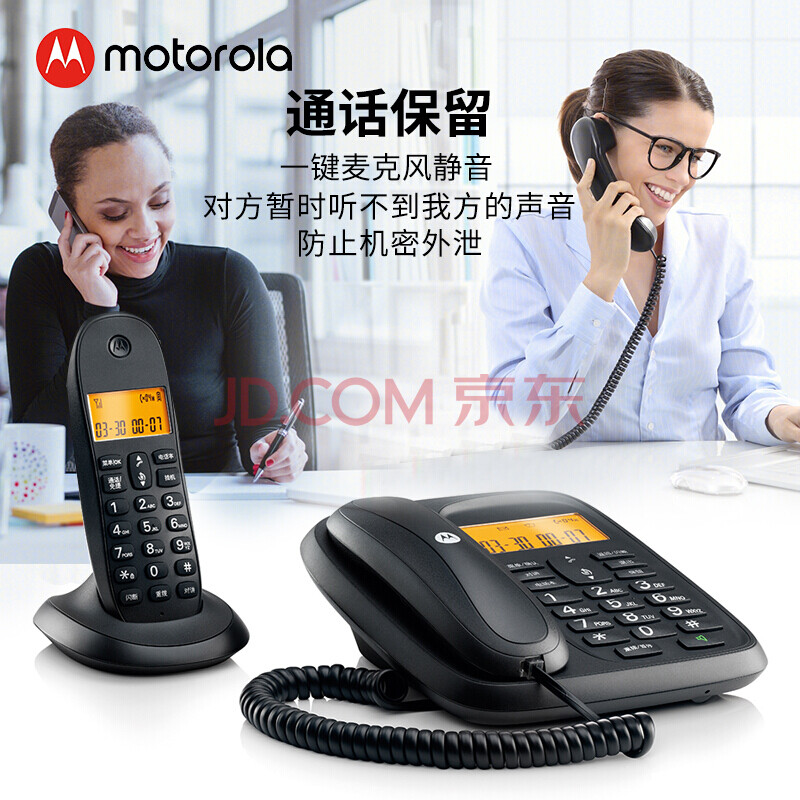 商品相册:摩托罗拉(Motorola)数字无绳电话机 无线座机 子母机一拖一 办公家用 中文显示 双免提套装CL101C(白色)第