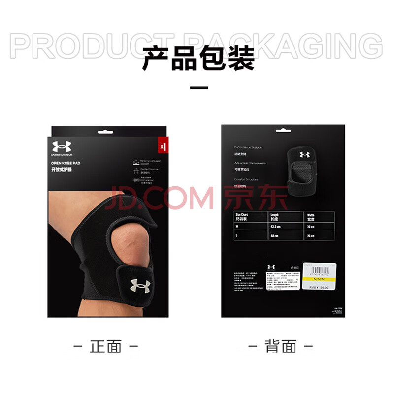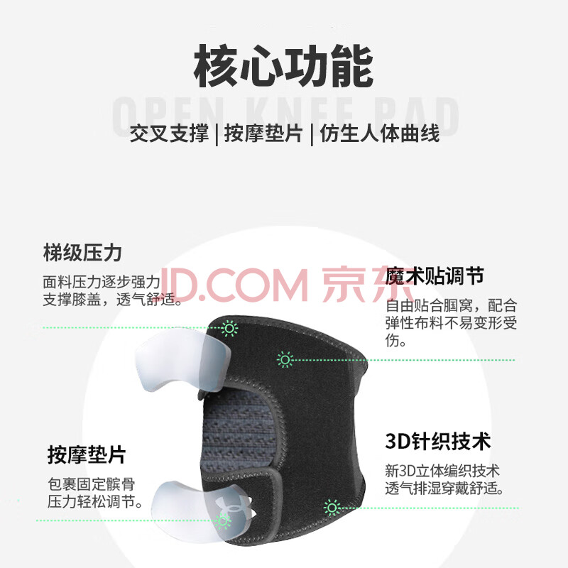 商品相册:安德玛(Under Armour)护膝运动 开放式髌骨支撑款 跑步护具半月板韧带防撞护膝 蓝色M码第