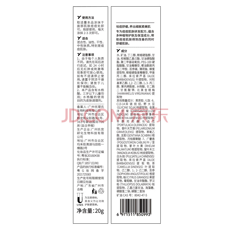 商品相册:优理氏祛痘药膏学生青春痘淡化痘印壬二酸凝胶乳膏去闭口粉刺水杨酸男女第