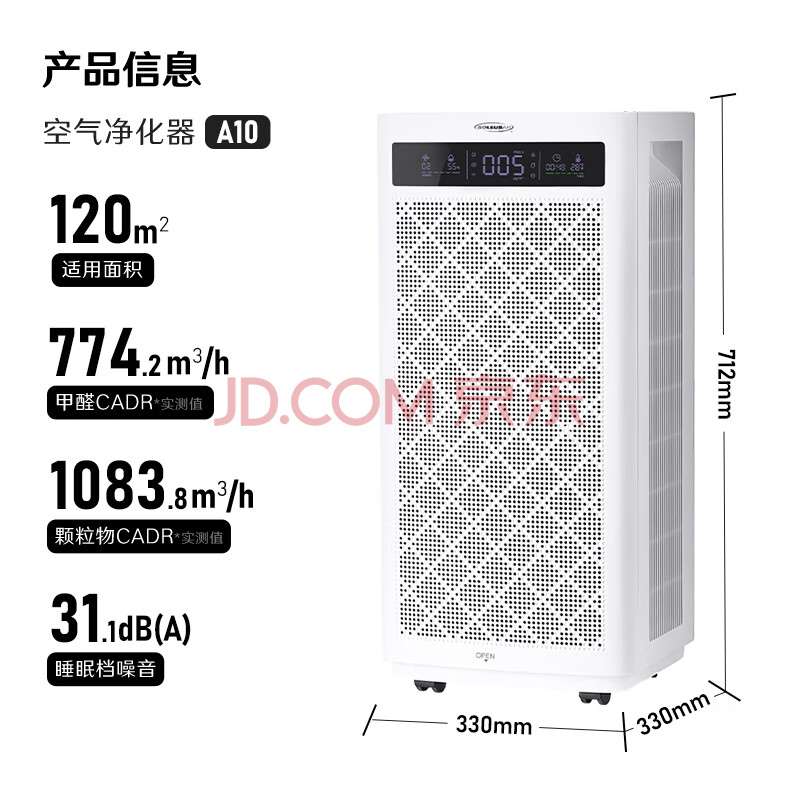 商品相册:SOLEUSAIR舒乐氏空气净化器除醛细菌流感病毒宠物吸附猫毛异味过敏原消毒机净化机 A10礼品第