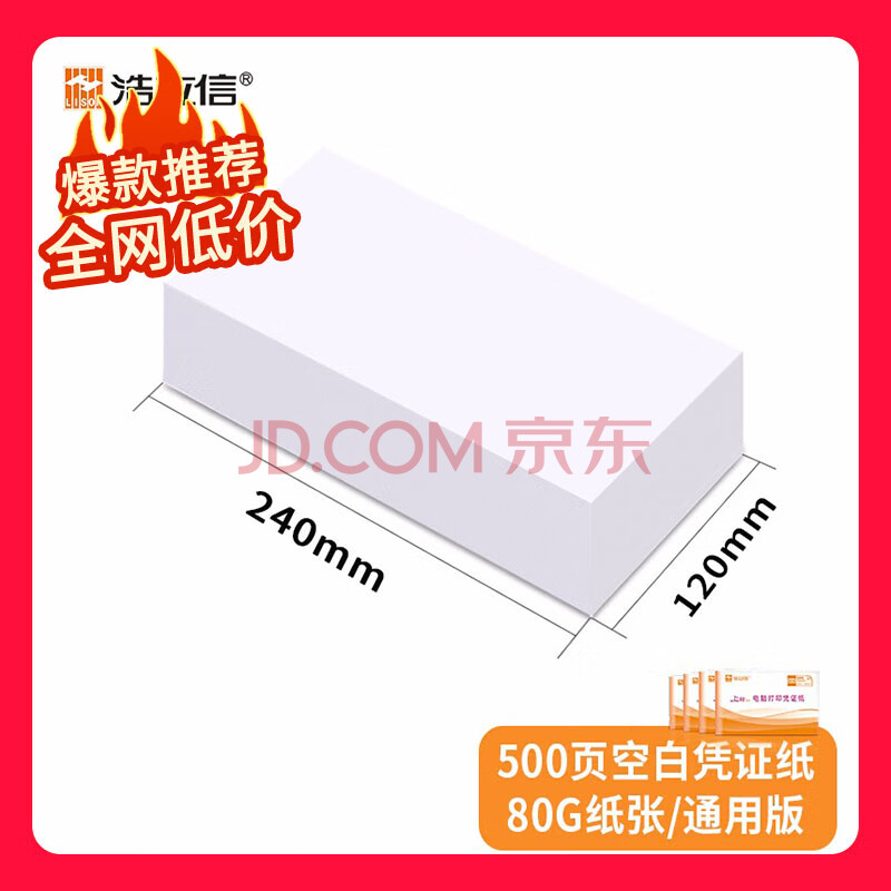 商品相册:浩立信(LISON)【超级爆款】聚橙优选80G 240*120 500张/包通用木浆空白凭证纸财务办公用品会计记账打印纸第