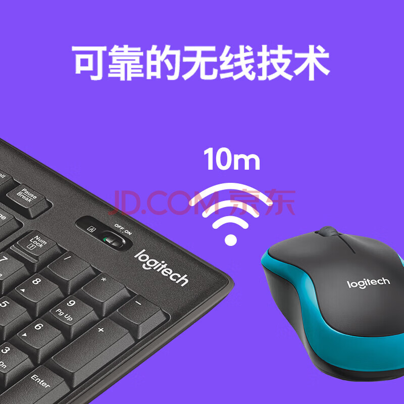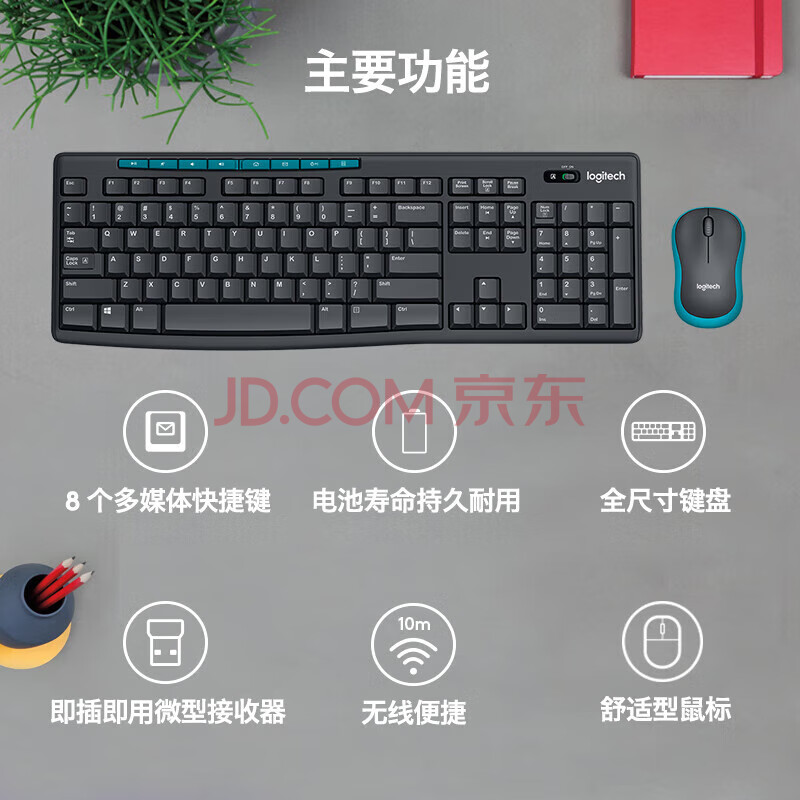 商品相册:罗技(G)MK275 键鼠套装 无线键鼠套装 办公键鼠套装 全尺寸 黑蓝色 带无线2.4G接收器第