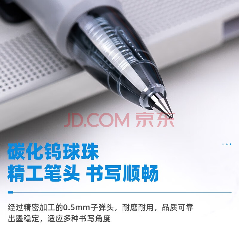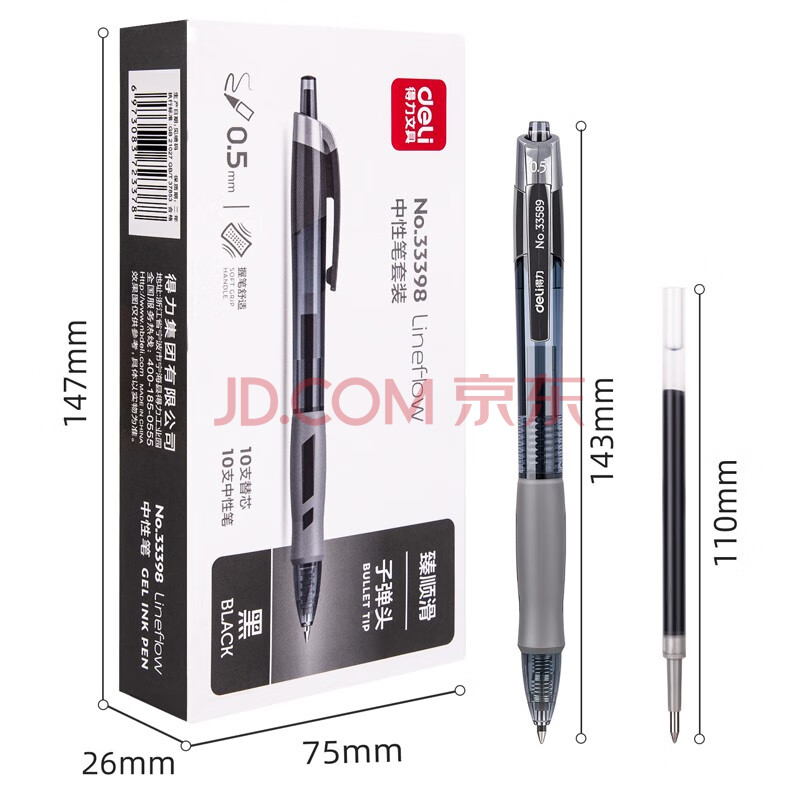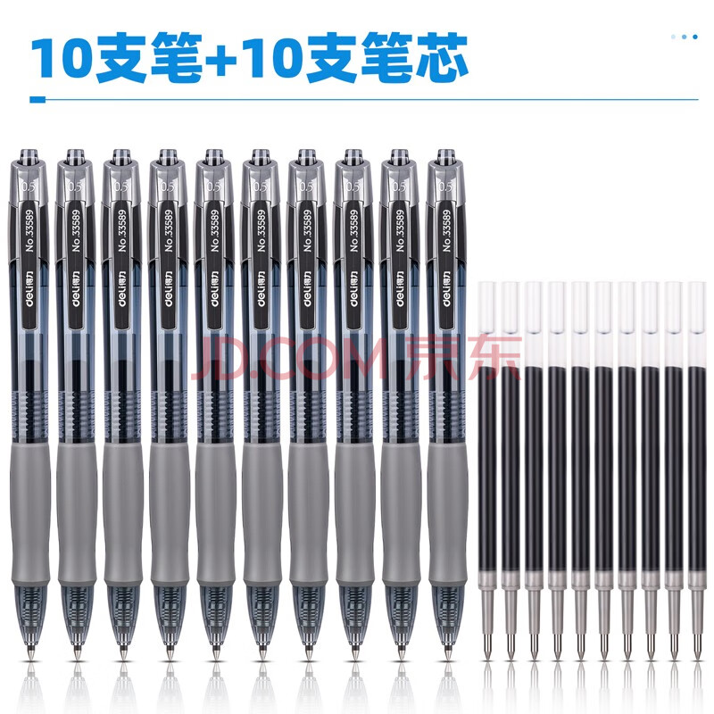 商品相册:得力(deli)臻顺滑中性笔签字笔芯套装 0.5mm子弹头按动笔水笔芯 黑色 10支笔+10支替芯 33398第