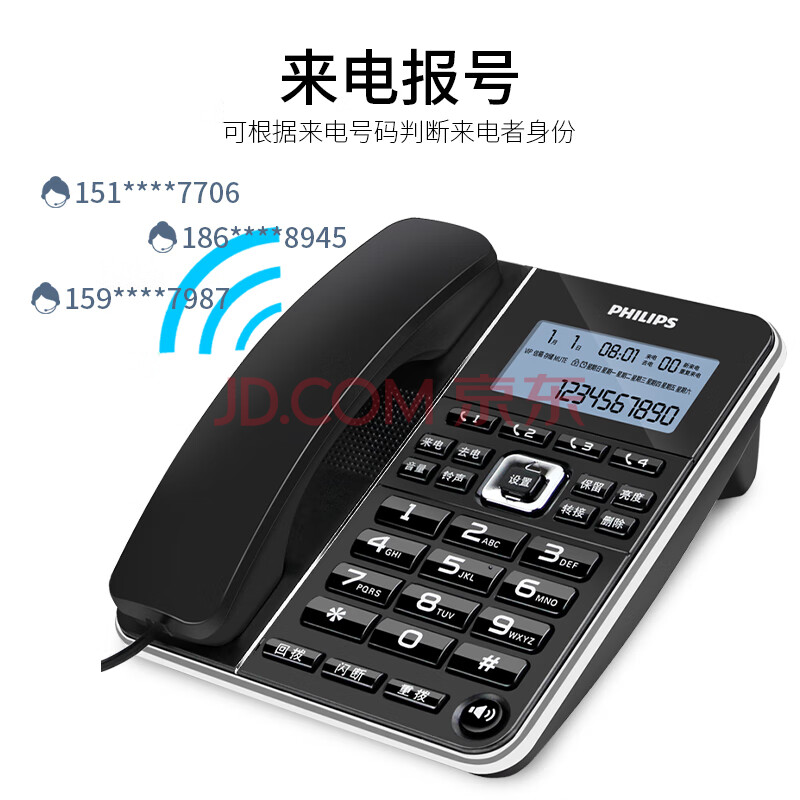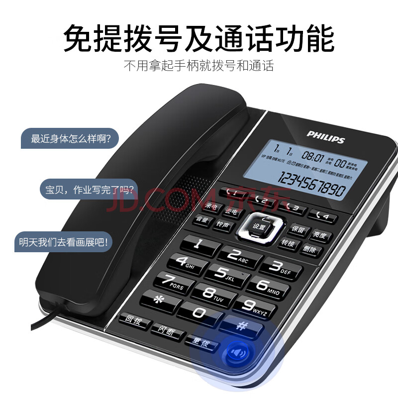 商品相册:飞利浦(PHILIPS)电话机座机 固定电话 办公家用 一键拨号 转接 来电报号 CORD228黑色第