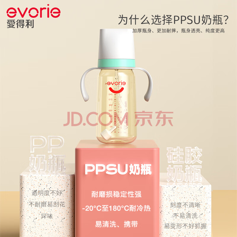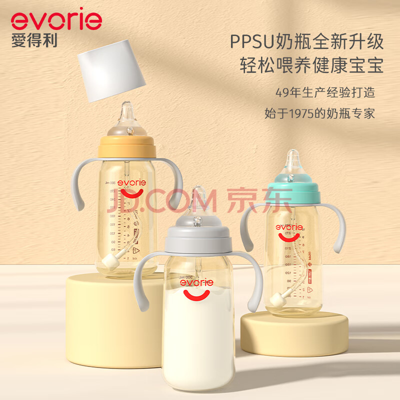 商品相册:爱得利(evorie) 婴儿奶瓶6个月以上 宽口径带手柄带重力球PPSU奶瓶 300ml绿第