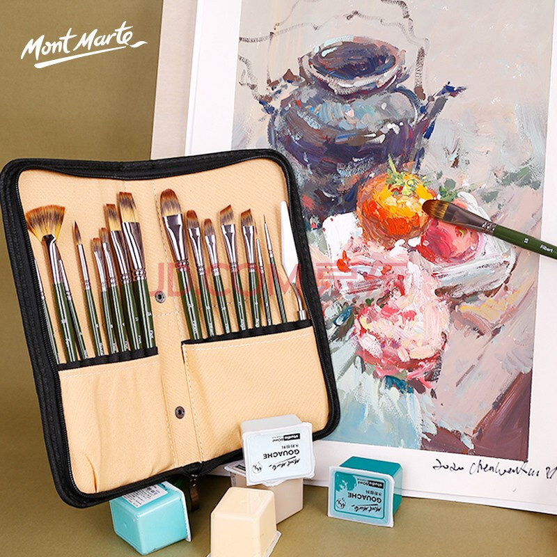 商品相册:蒙玛特(Mont Marte)油画笔15支装 油画颜料画笔美术画画笔勾线笔丙烯水粉水彩绘画笔 带刮刀笔袋套装BMHS0044 速写 马克笔绘画第