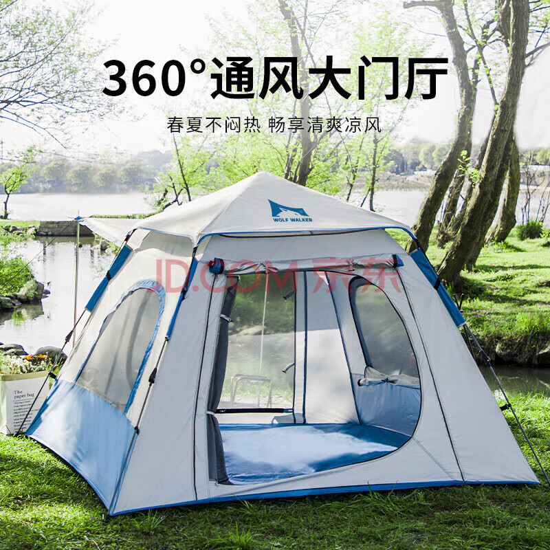 商品相册:狼行者户外帐篷露餐公园休闲遮阳3-4人大空间全自动速开免搭建 蓝色第
