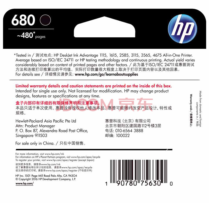 商品相册:惠普(HP)原装680黑色墨盒适用1118/2138/2676/2677/2678/2679/3636/3638/3838打印机F6V27AA(480页)第
