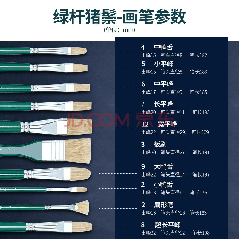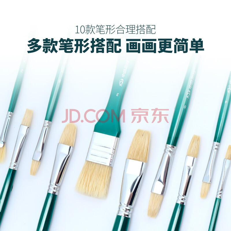 商品相册:中盛画材(transon)10支装画笔套装多笔头猪鬃画笔水彩水粉笔丙烯油画颜料专用笔多笔头排笔含笔包美术写生第