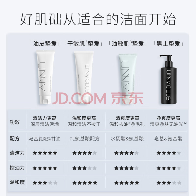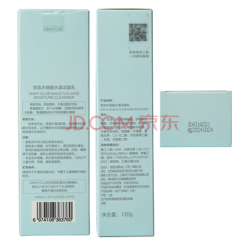 商品相册:悠宜(unny club)清肌120g+水杨酸120g洁面乳(氨基酸洗面奶套装男女士学生)第
