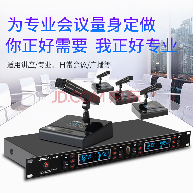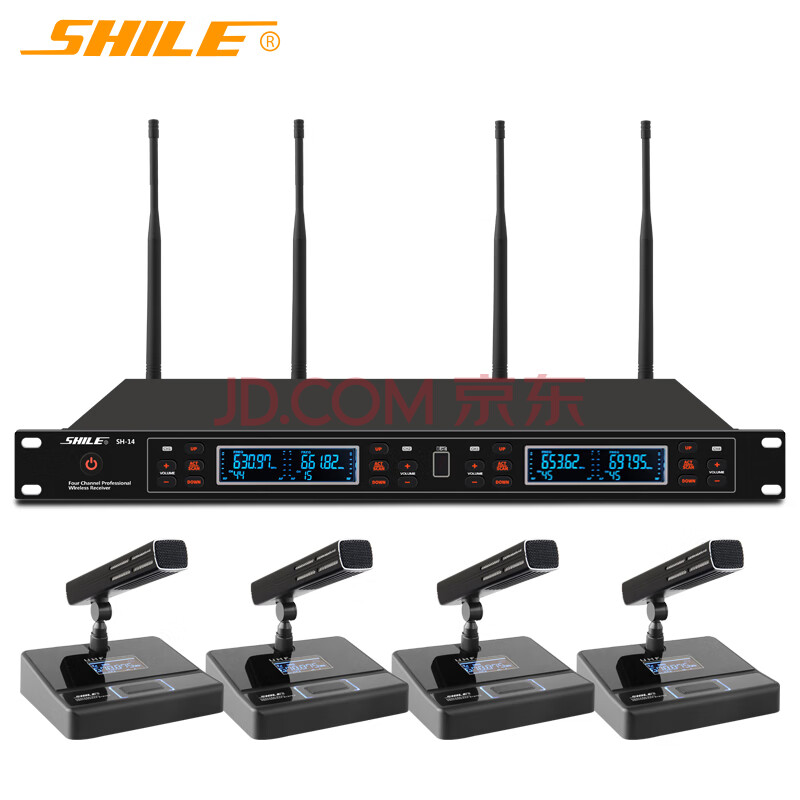 商品相册:狮乐(SHILE)SH-14无线会议室话筒短杆一拖四U段方杆麦克风专业会议主持桌面鹅颈第