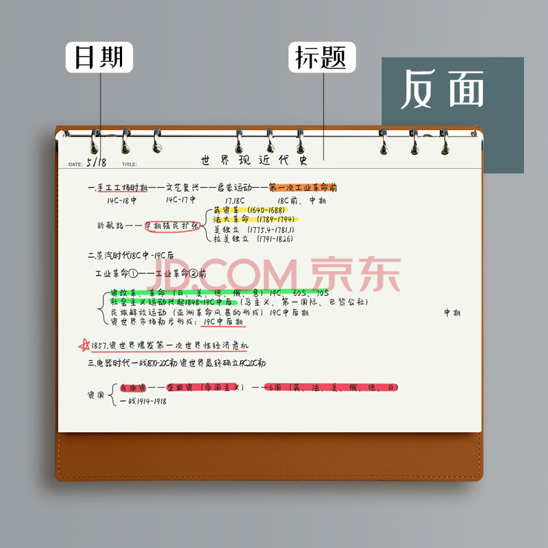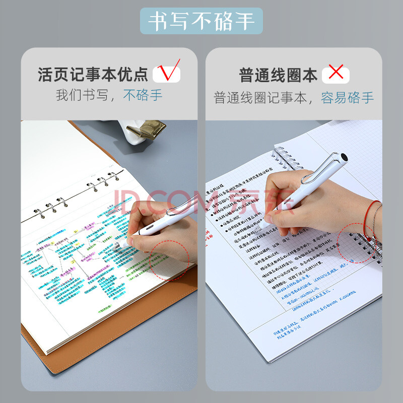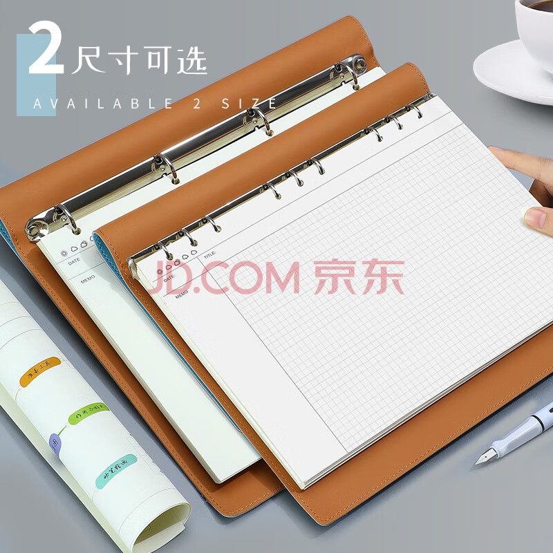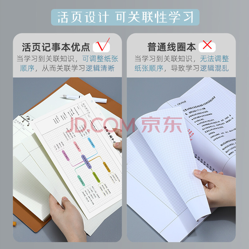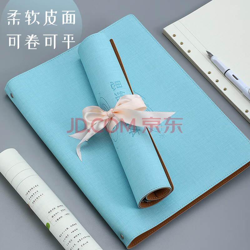 商品相册:嘉然恒A4大号思维导图5r记忆活页康奈尔笔记本本子软皮面大学生考公考研网格本方格复习记事本可拆卸蓝色第