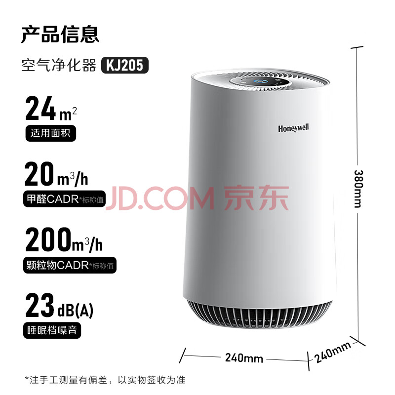 商品相册:霍尼韦尔(Honeywell)空气净化器 家用书房办公除甲醛除异味二手烟桌面专用净化器 KJ205F-PAC000AW第