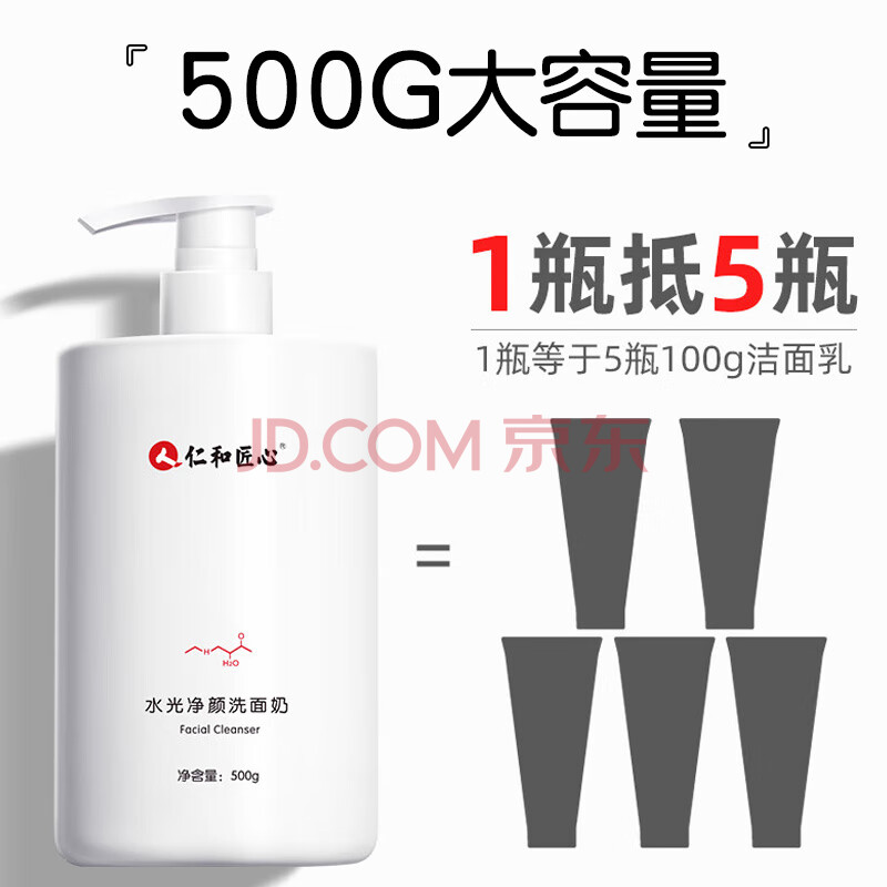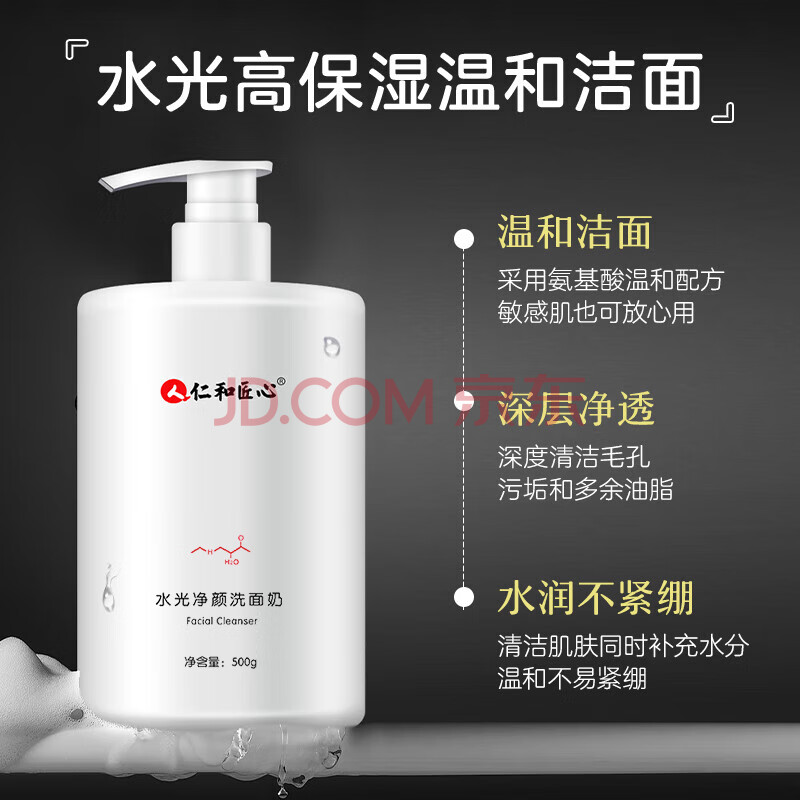 商品相册:仁和匠心氨基酸洗面奶500g男女士深层清洁控油祛痘黑头粉刺补水保湿洁面乳第