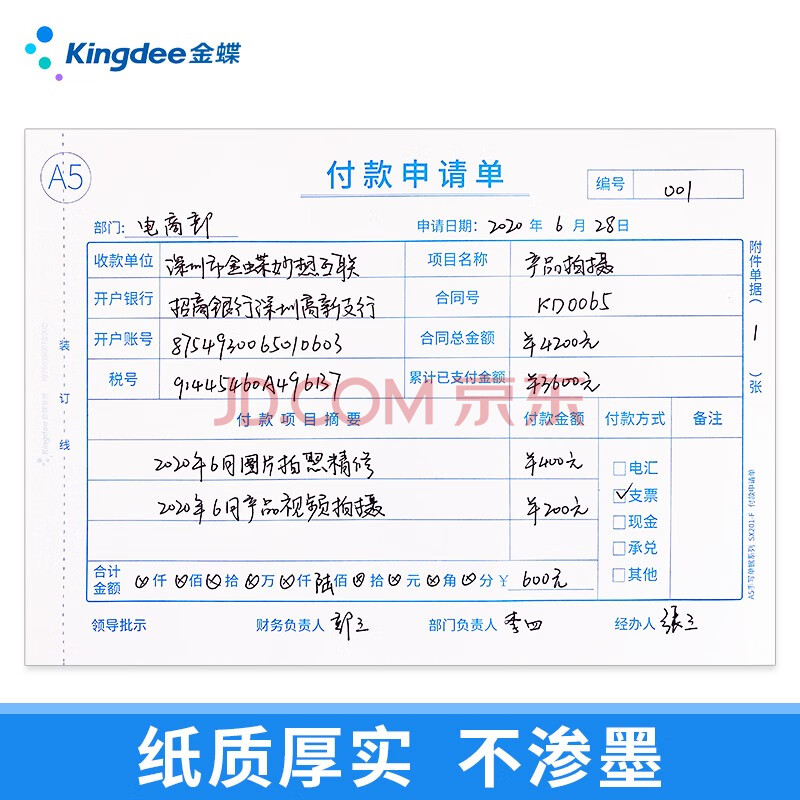 商品相册:金蝶(kingdee)A5付款单财务手写单据210*148.5mm a4纸一半 10本/包第
