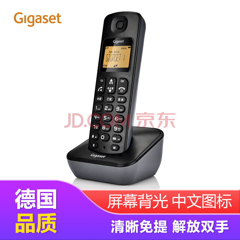 商品相册:Gigaset原西门子数字无绳电话机 无线座机子母机办公家用固话屏幕背光 中文显示 双高清免提A190L单机(黑)第