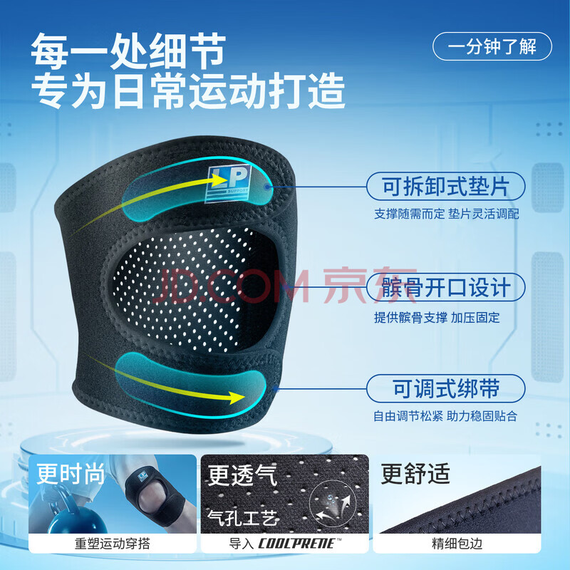 商品相册:LP790CN护膝髌骨带四季透气跑步篮球羽毛球加压带S/M码第