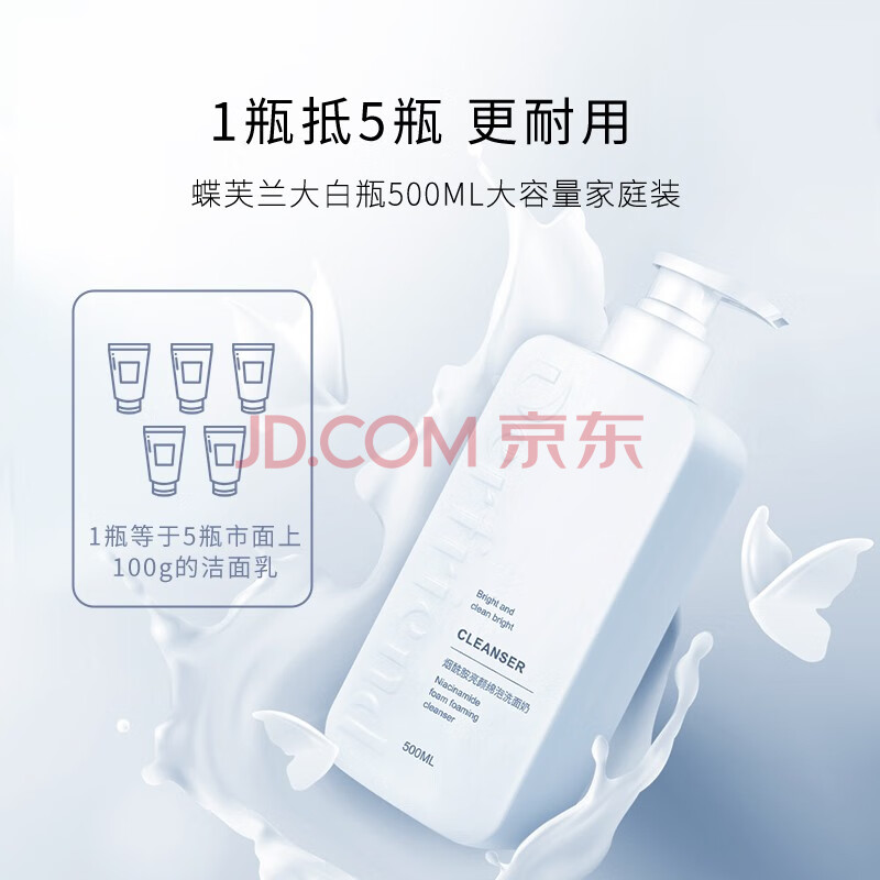 商品相册:蝶芙兰烟酰胺洗面奶氨基酸清洁毛孔500ml卸淡妆洁面乳送妈妈礼物第
