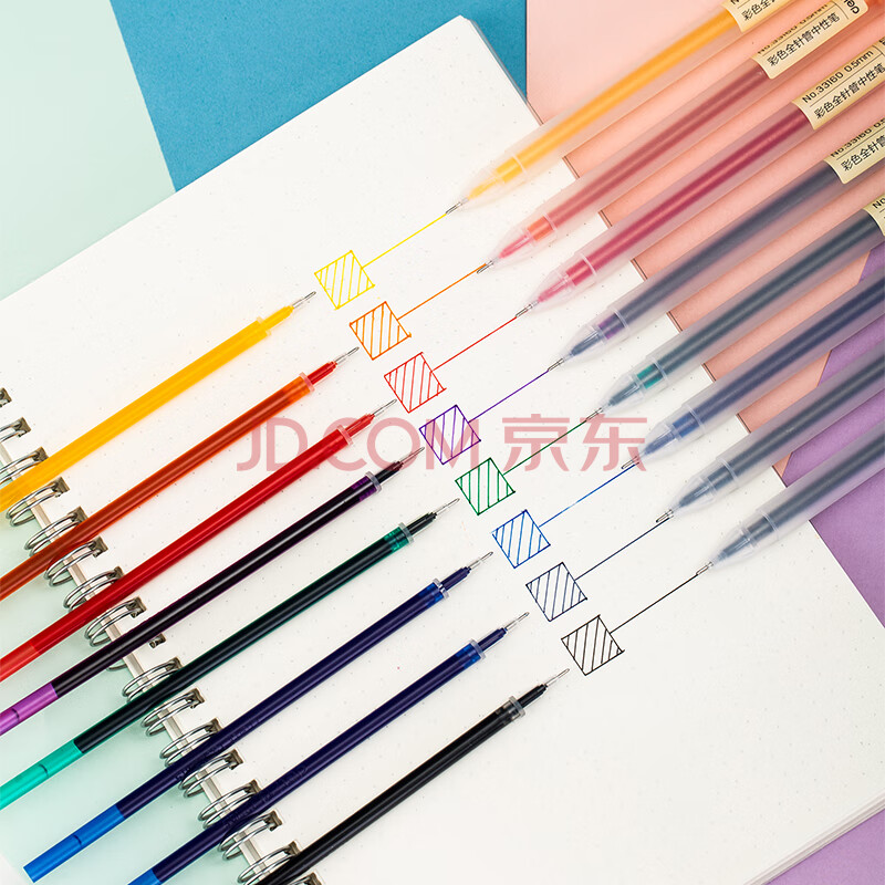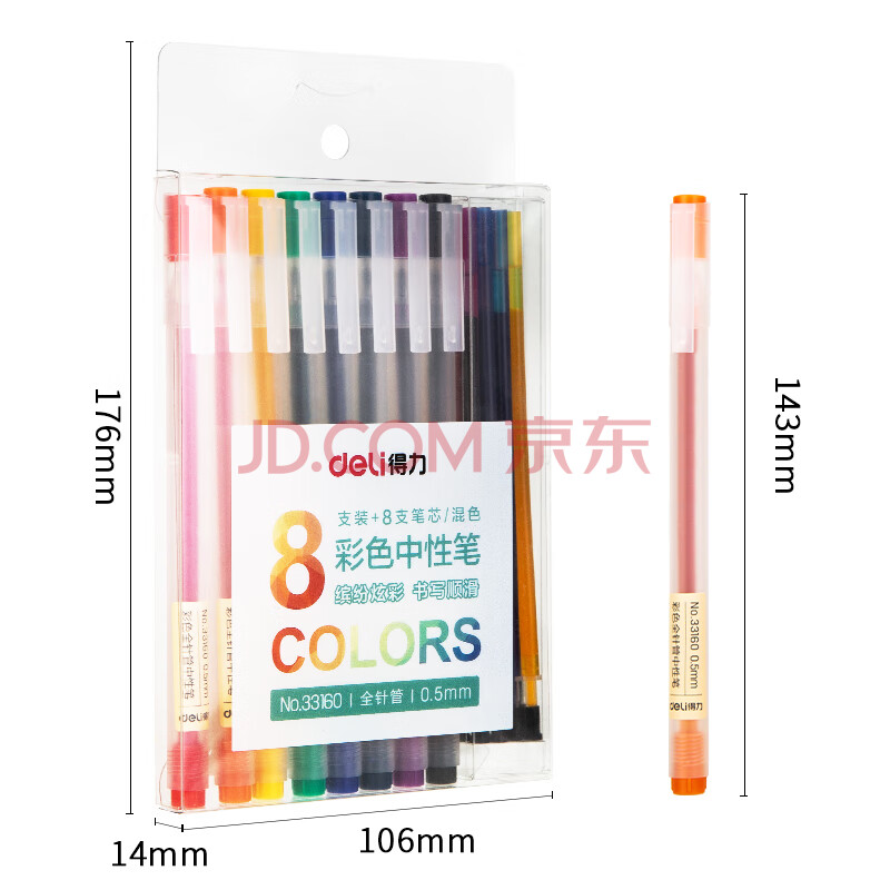 商品相册:得力糖果8色拔帽彩色中性笔套装 0.5mm全针管签字笔荧光笔水笔手账笔 8笔+8芯 33160第