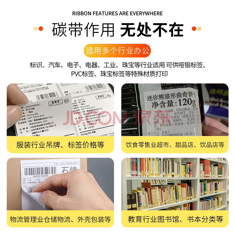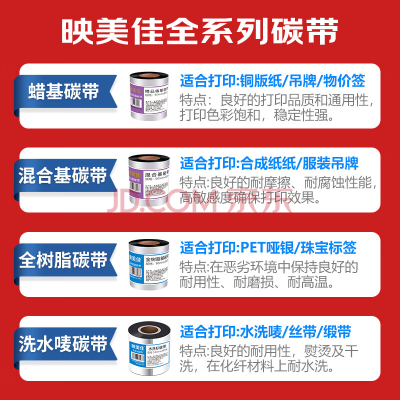 商品相册:映美佳混合基碳带110mm*300m 适用斑马/TSC等条码打印机通用型色带热转印标签机碳带第