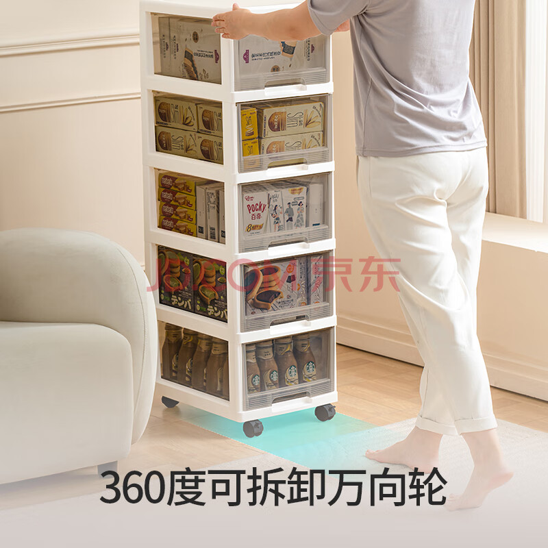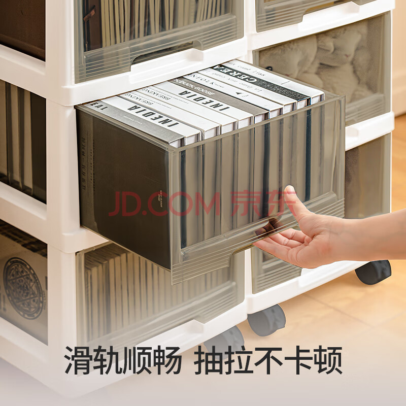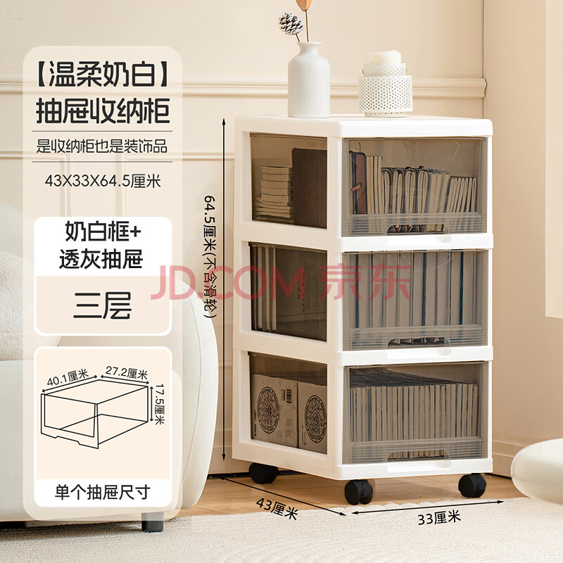 商品相册:禧天龙免安装卧室收纳柜抽屉式儿童简易衣柜床头柜玩具收纳箱 3层透明灰第