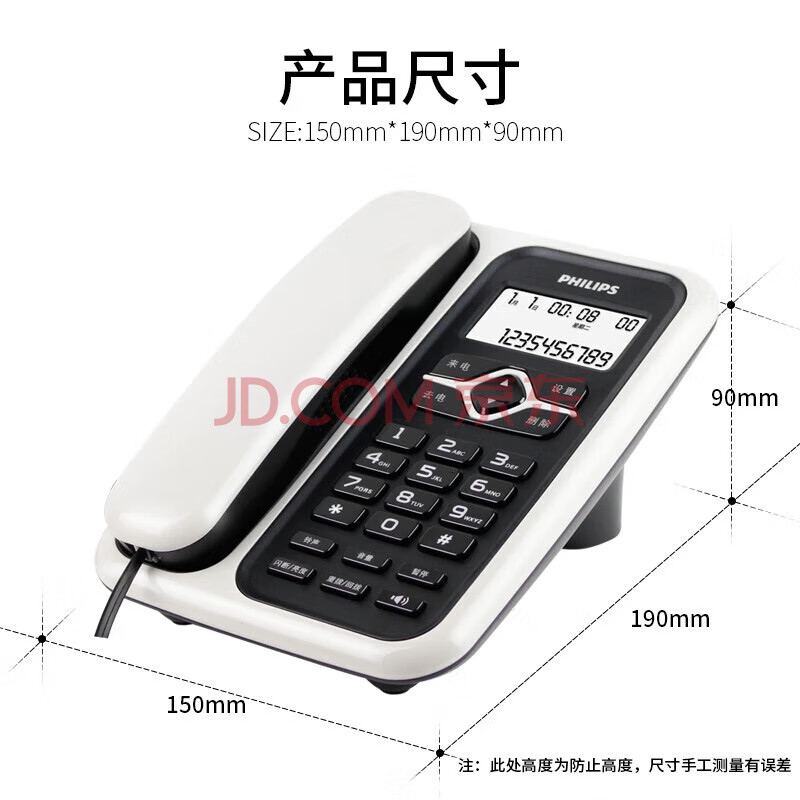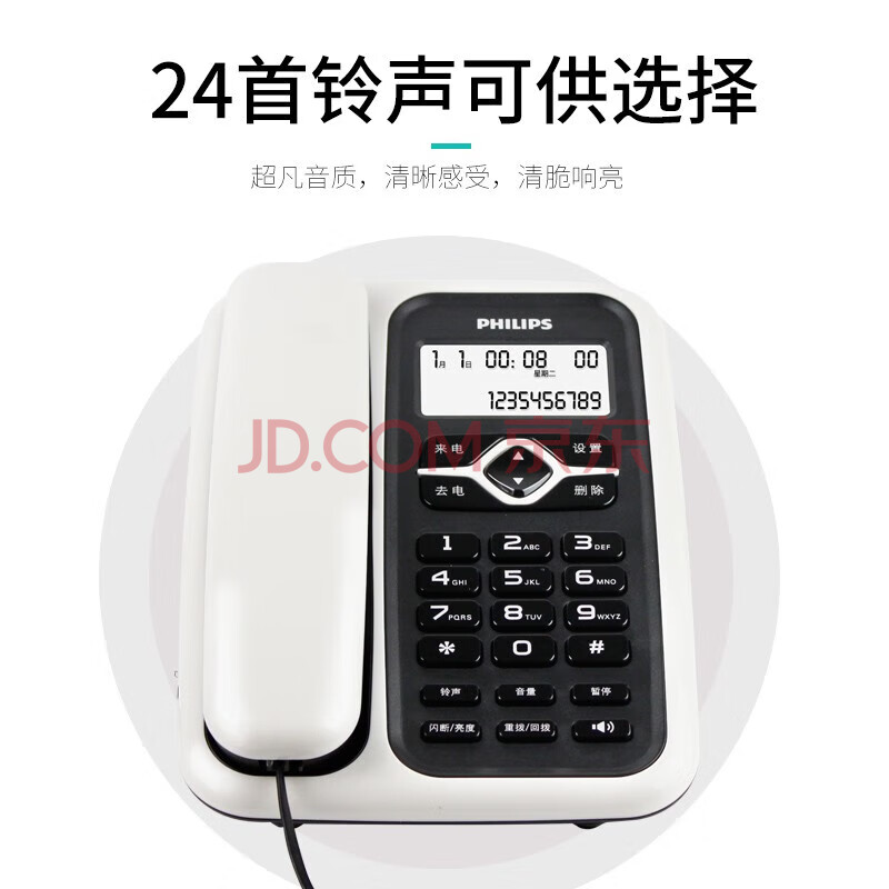 商品相册:飞利浦电话机座机 固定电话 办公家用 免电池 插线即用 CORD020白色第