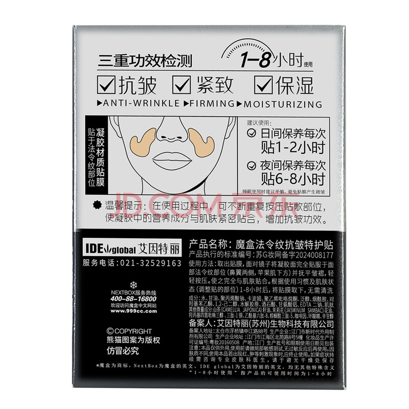 商品相册:魔盒 法令特护贴 7对/盒*3 法令纹贴提拉淡化细纹皱纹嘴角纹表情纹第