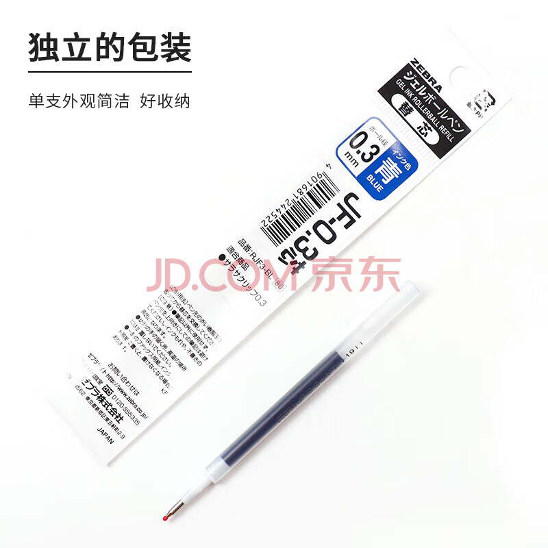 商品相册:斑马牌(ZEBRA)中性笔替芯(适用于JJH15)0.3mm子弹头啫喱笔芯 JF-0.3芯 RJF3 蓝色 10支装第