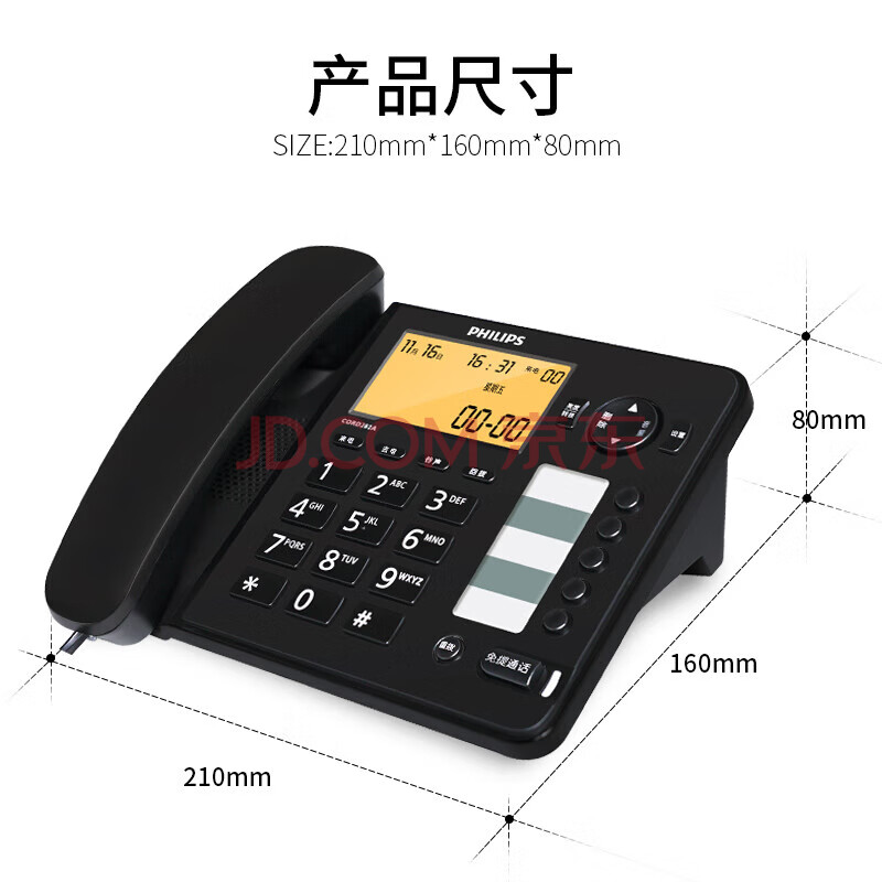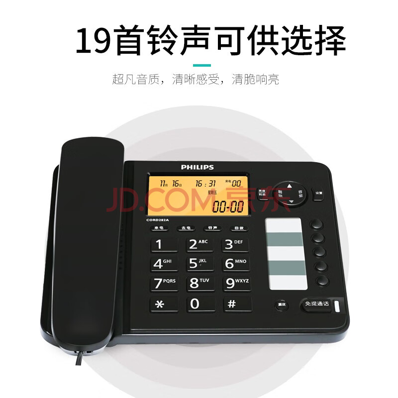 商品相册:飞利浦(PHILIPS)电话机座机 固定电话 办公家用 语音报号 屏幕橙色背光 CORD282A黑色第