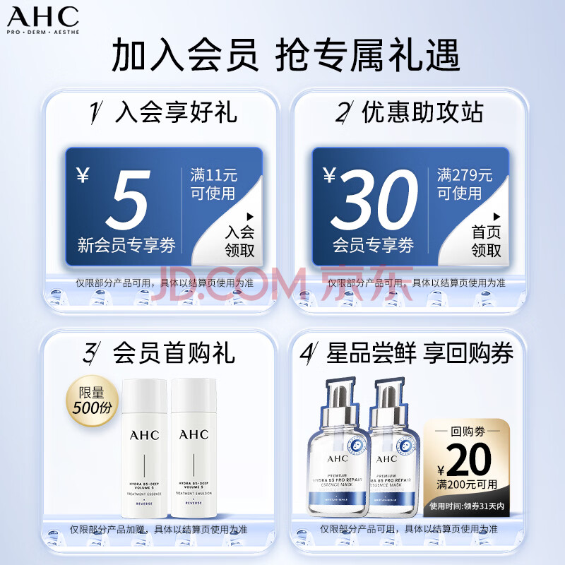 商品相册:AHC B5玻尿酸面霜50ml护肤品补水保湿滋润乳液生日礼物送女友第