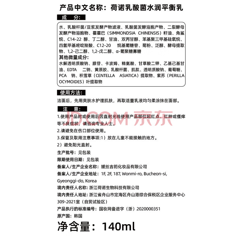 商品相册:荷诺益生菌水润平衡乳140ml保湿补水乳液男女适用女神节礼物第