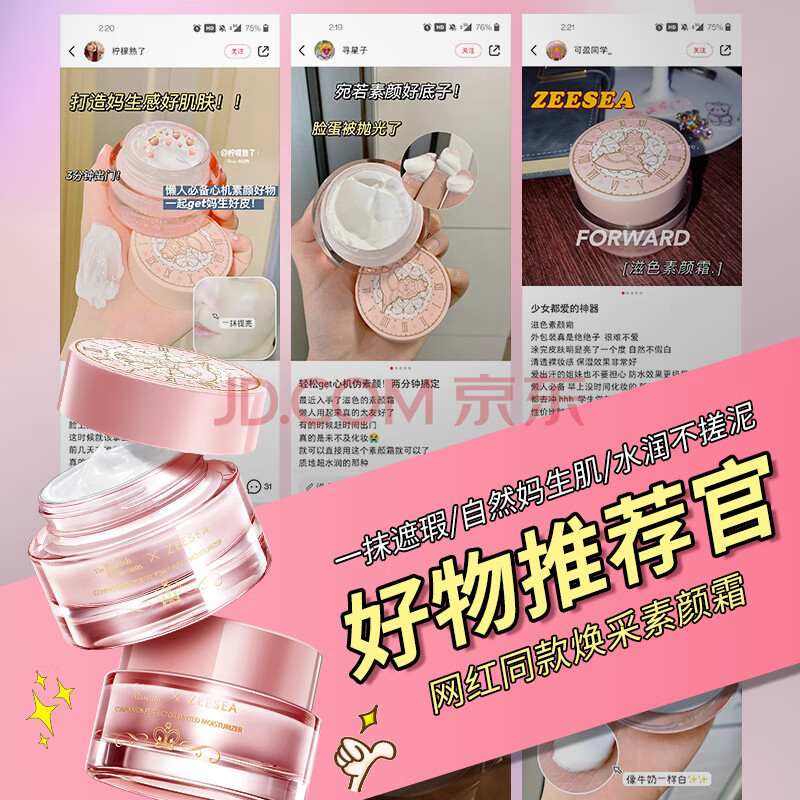 商品相册:ZEESEA滋色素颜霜女 姿色爱丽丝懒人霜面霜遮瑕提亮保湿裸妆50g生日礼物第