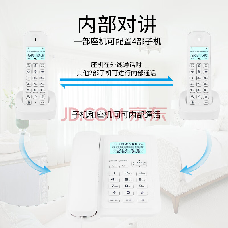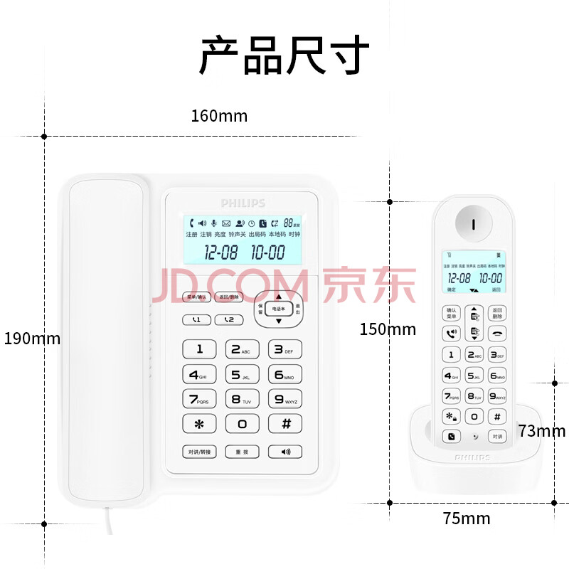 商品相册:飞利浦(PHILIPS)数字无绳电话机 无线座机 子母机 办公家用 信号覆盖广 屏幕白色背光 DCTG167一拖一白色第