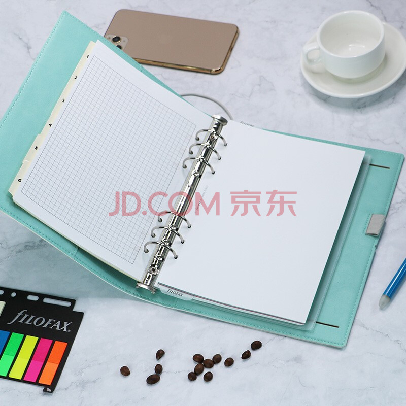 商品相册:Filofax记事本英国进口高档手帐本简约软皮面活页笔记本礼盒装domino系列A5鸭蛋青色022601第