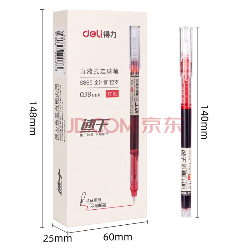 商品相册:得力(deli)速干直液笔签字笔 0.38mm全针管无印风中性笔水笔走珠笔会议笔 ins简约风12支/盒S865红第