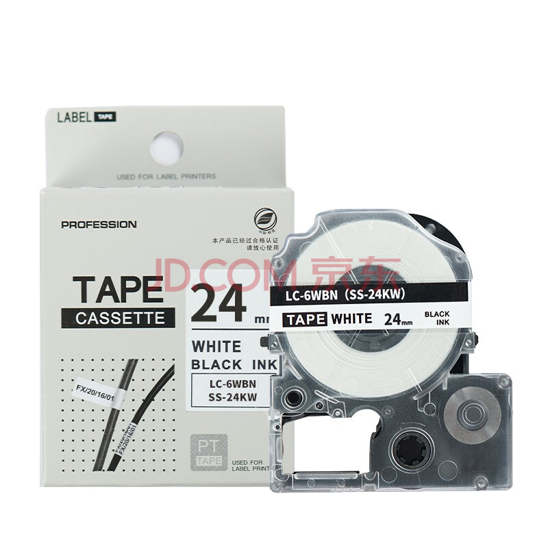 商品相册:绘威 SS24KW标签带 不干胶标签纸覆膜标签 标签机色带适用爱普生/锦宫标签打印机 白底黑字24mm*8m第