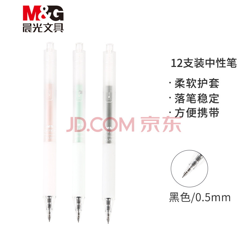 商品相册:晨光(M&G)文具 按动中性笔0.5学生黑笔签字笔商务子弹头水笔办公用品 黑色 12支/盒第