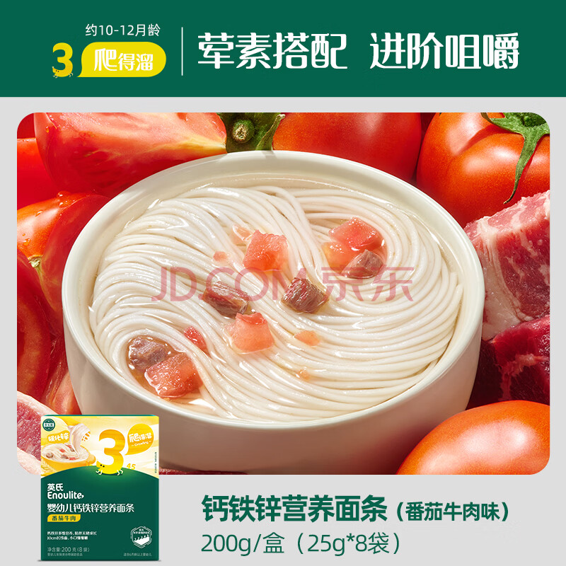 商品相册:英氏婴幼儿面条番茄牛肉味200g 宝宝辅食儿童早餐线面长直面 真验厂第